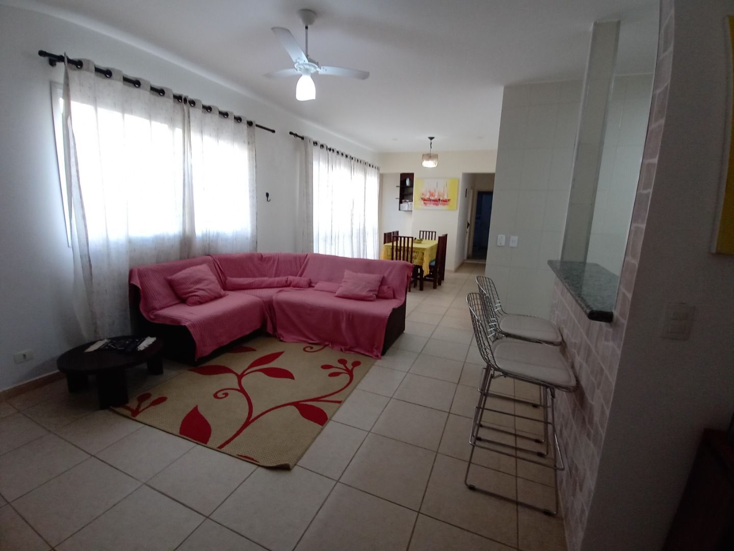 Enseada lado praia, apartamento amplo mobiliado com 03 dormitórios (3º reversível), sala para 02 ambientes, banheiro social, cozinha, área de serviço com wv e 01 vaga de garagem.