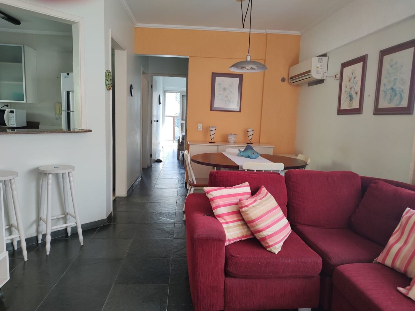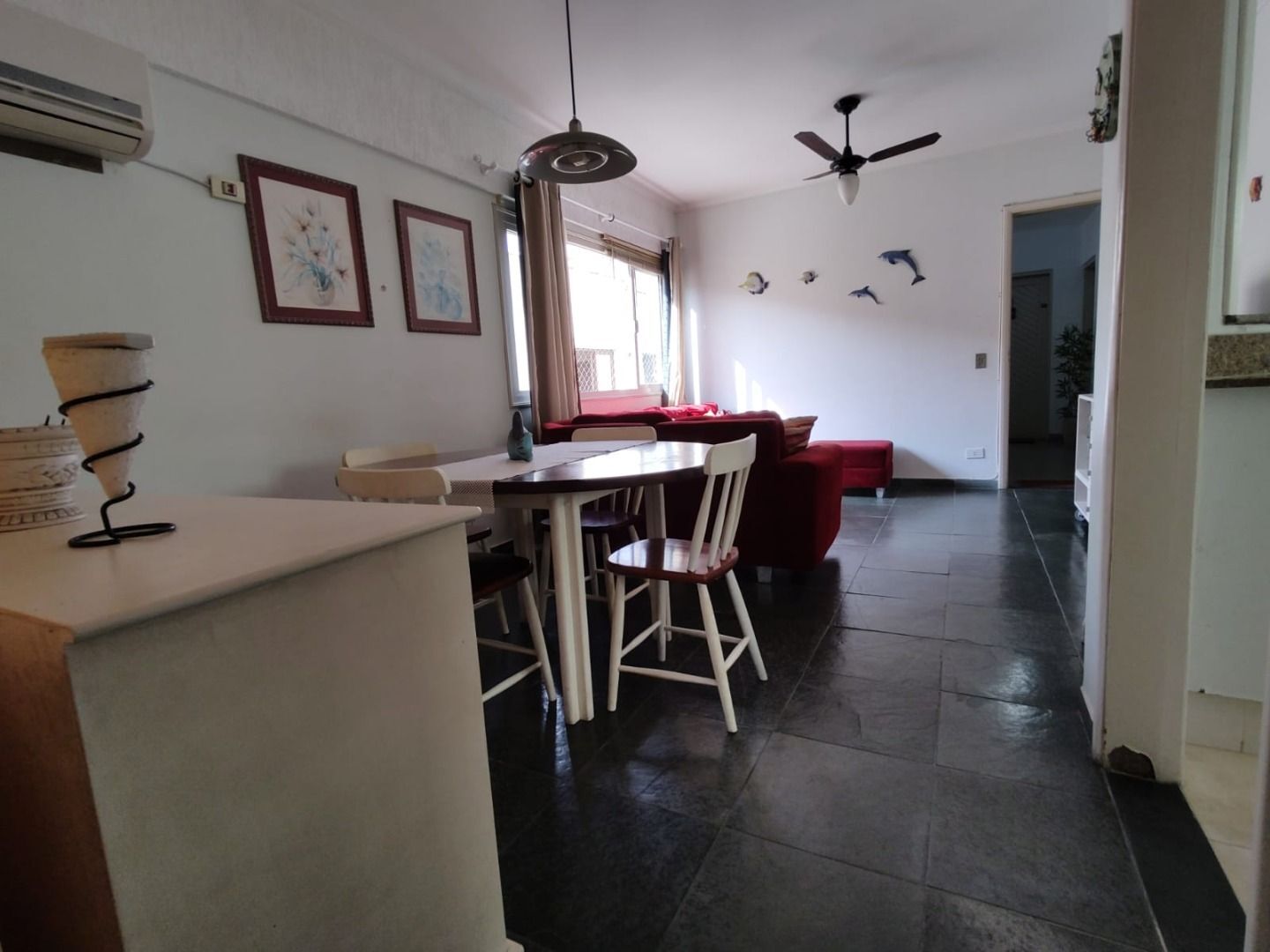 Apartamento 2 dormitórios, sendo 1 suíte Ampla sala para dois ambientes com sacada Uma vaga de garagemÓtima localização, lado praia - Enseada, região do Casa Grande Hotel, Local bem servido de comércio em geral Apartamento totalmente mobiliado