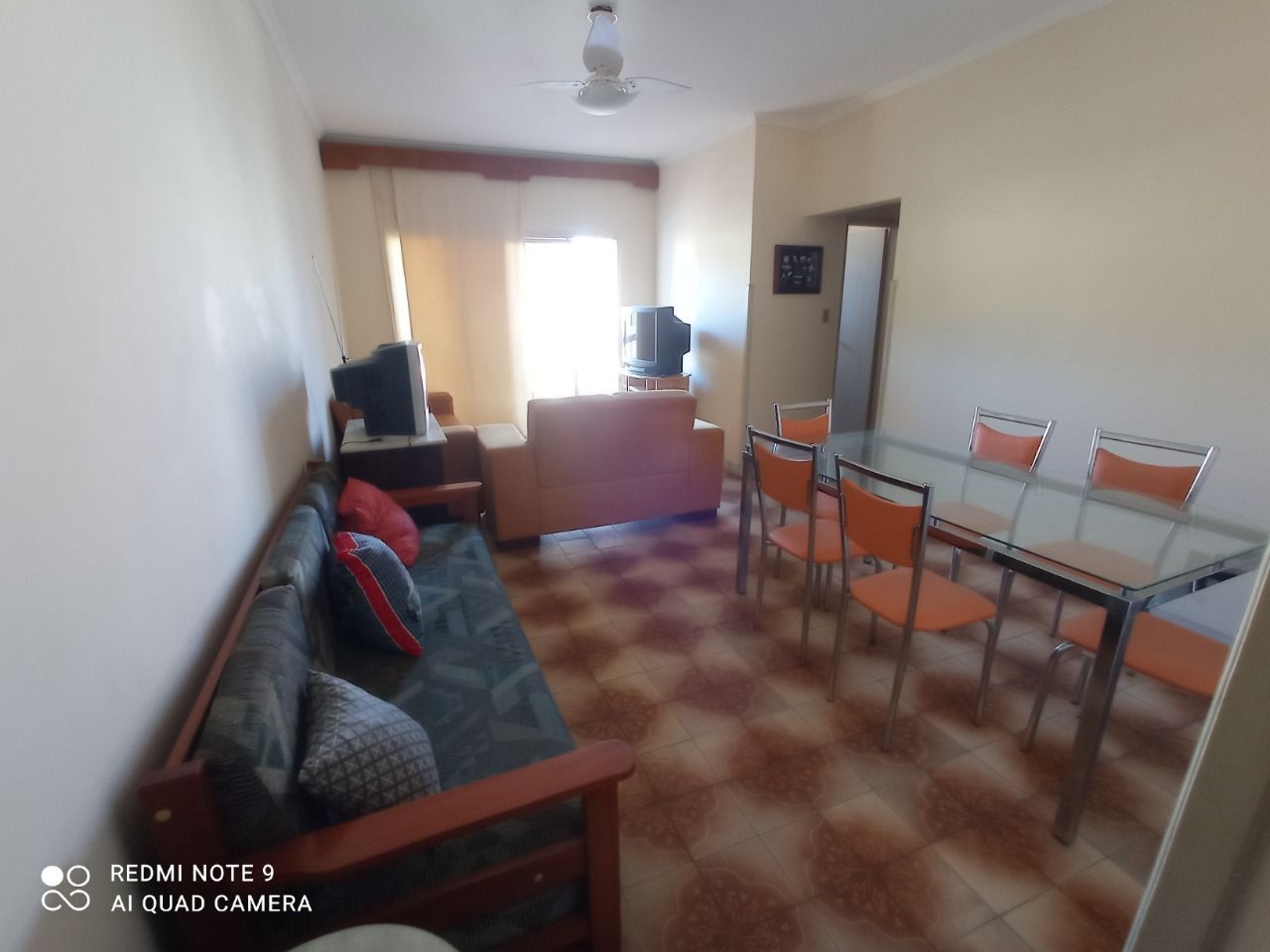Praia da Enseada, apartamento mobiliado com 02 dormitórios, sala para 02 ambientes com sacada, 02 banheiros, cozinha, área de ser e 01 vaga de garagem.Lado praia á 300 mts.