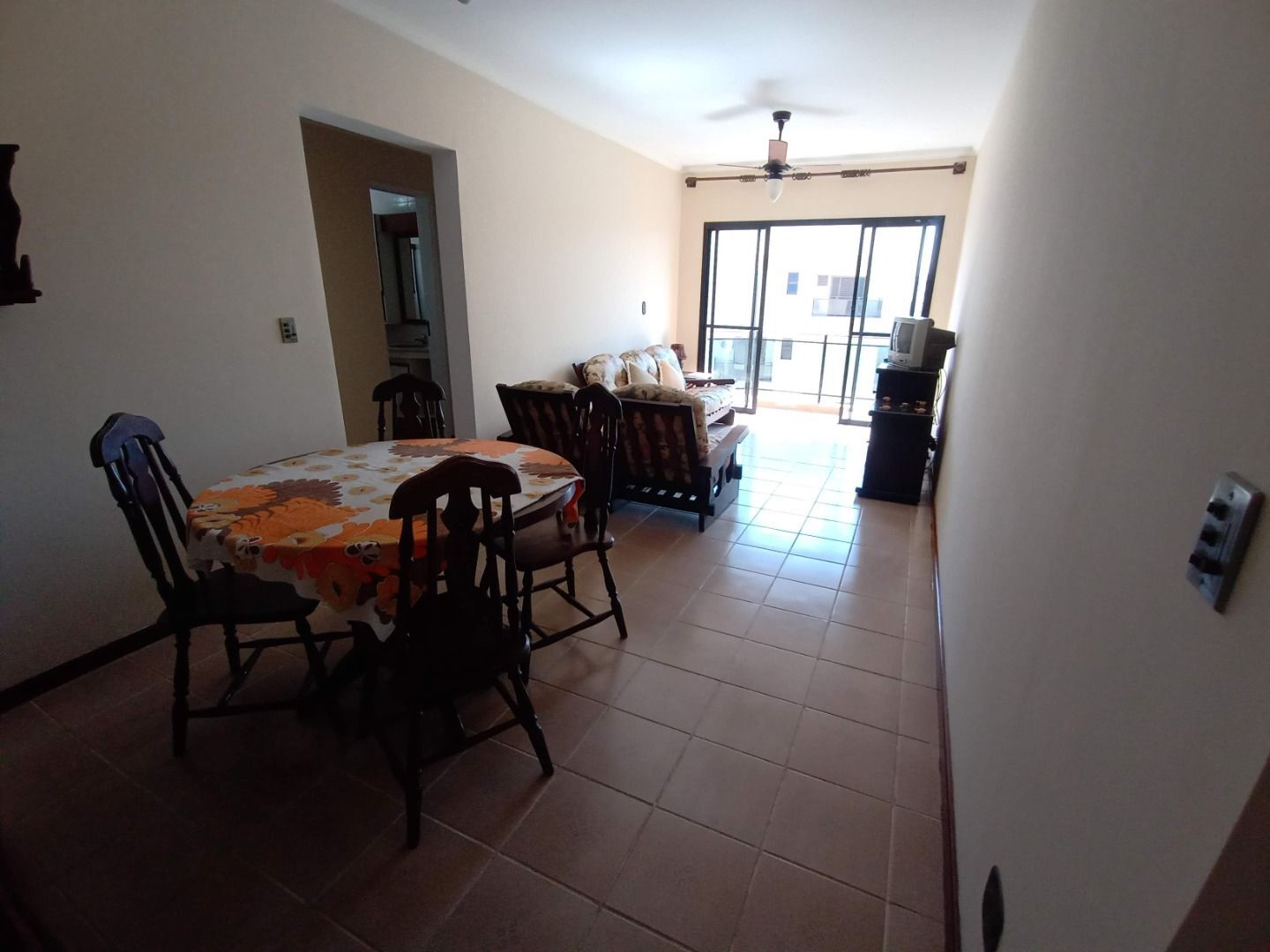 Ótimo apartamento com lazer na praia da Enseada.Sala para 2 ambientes com sacada grande, ventilador de teto, , piso claro cerâmico., 3 dormitórios sendo 1 reversível, banheiro social e de serviço, ampla cozinha.Prédio com piscina, churrasqueira, 1 vaga de garagem.Localizado a 3 quadras da praia, próximo a supermercados, farmácia, restaurantes, comércio em geralAgende sua visita.