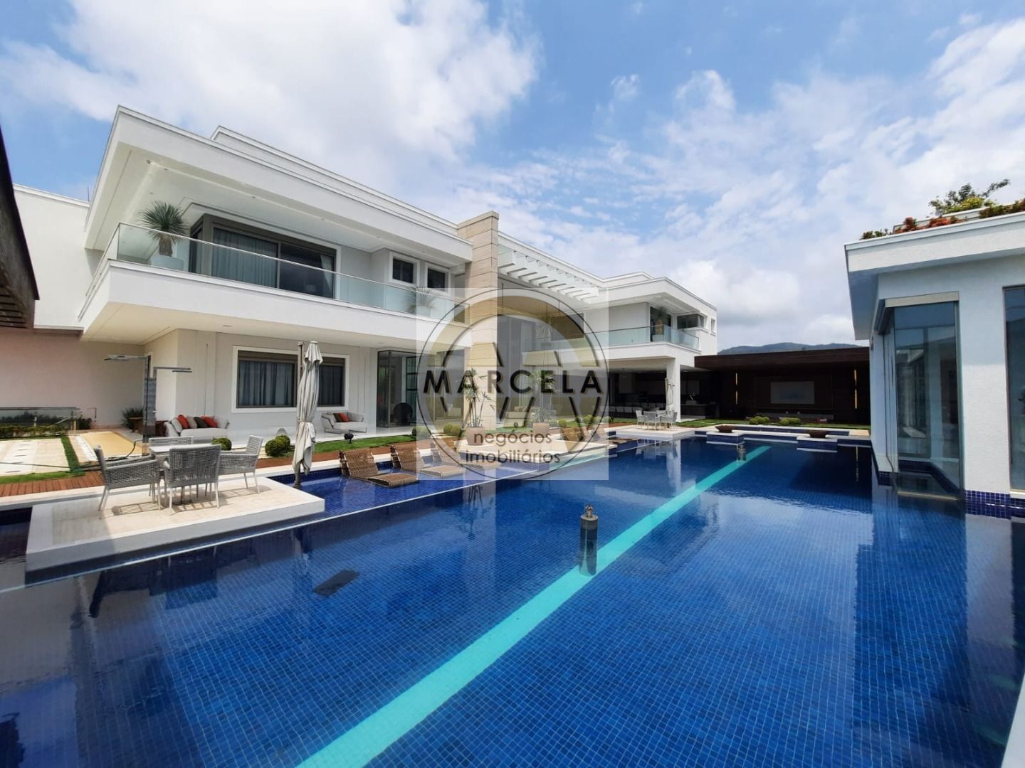 Casa Resort a venda Jardim Acapulco Guarujá Para os apreciadores de exclusividade e sofisticação, o Condomínio Jardim Acapulco apresenta sua residência mais luxuosa: a Casa Resort. Localizada dentro do residencial fechado no litoral paulista, a casa de praia está à espera de um novo proprietário.Antes de tudo, a arquitetura do imóvel é a primeira coisa a chamar atenção. O elegante projeto de paisagismo define a Casa Resort. Construída com materiais de primeira linha, possui chafarizes dispostos no jardim. Além disso, o projeto de instalação de luminárias exibe lindos shows de águas com iluminação em LED. As áreas gramadas e palmeiras completam a fachada.Salas da Casa ResortAo cruzar a porta de entrada, encontra-se a ampla sala principal. O mobiliário clean é assinado por marcas de luxo. Sofás e poltronas revestidos em tecido cru seguem a tendência atual. Ademais, mesas de apoio e elegantes objetos de decoração selecionados pelo designer de interiores enfeitam a sala.O pé direito duplo é valorizado pelas cortinas e dois grandes lustres produzidos à mão com cristais Swarovski. Além disso, as enormes áreas envidraçadas permitem que a luz natural ilumine toda a casa durante o dia.A fim de realçar o ambiente, a sala de jantar e a cozinha são divididas por painéis em madeira inspirados pela cultura árabe. Ao redor da mesa com tampo de vidro, até doze convidados podem desfrutar dos jantares em família com tranquilidade.Cozinha e espaço gourmetJá a sala de almoço está totalmente integrada à cozinha. Uma mesa oval contemporânea acomoda seis pessoas para as refeições durante o dia. A cozinha é equipada com armários planejados em acabamento luminoso e eletrodomésticos da mais alta tecnologia. Além disso, portas deslizantes fazem a conexão do cômodo com a área gourmet, deixando o ambiente amplo e arejado.O espaço gourmet é mobiliado seguindo o mesmo padrão luxuoso da cozinha. O local ainda dispõe refrigerador, fornos e churrasqueira. Cerca de vinte pessoas podem se acomodar entre os bancos altos do balcão e a mesa de madeira. Por isso, boas diversões gastronômicas são garantidas para os moradores e seus convidados.Sob a varanda, um suntuoso lounge com inspiração oriental conta com fogo de chão. Por fim, um sofá-cama está à disposição para quem quiser curtir um tempo de descanso após a refeiçãoHome theater e sala de jogosA Casa Resort inclui um acolhedor home theater, que conta com dois conjuntos de sofás dispostos em desnível no estilo de um cinema. A mobília foi feita sob medida. Os equipamentos de áudio e vídeo completam um dos ambientes mais confortáveis da residência. Dessa forma, os proprietários e seus convidados podem assistir seus filmes e séries preferidos.Em um pavilhão separado, encontra-se a sala de jogos. Painéis com fotografias do principado de Mônaco decoram as paredes. Com o fim de entreter os adultos, o cômodo é mobiliado por mesas de bilhar, pôquer e sinuca.No mesmo anexo, está a sala de ginástica, equipada com esteira, módulos para treino de fortalecimento e pesos livres. Em outras palavras, o ambiente está pronto para quem quer manter a forma enquanto curte o fim de semana ou as férias.Lazer na Casa ResortA piscina é um dos grandes atrativos da Casa Resort. Ela é moldurada por mármore italiano e por um deck em madeira com pontos de luz. Prainha, cascata e raia estão lá para quem deseja se exercitar, por exemplo. Uma jacuzzi à sombra do pergolado em madeira oferece descanso aos proprietários. Móveis em fibra sintética compõem o espaço.O alpendre também está ricamente decorado por sofás e poltronas em balanço dispostos em dois lounges, que servem como espaços de convivência. Além disso, na lateral do terreno há um enorme campo gramado de futebol.Suítes da Casa Resort9 suítes totalmente decoradas com enxovais premium se encontram no pavimento superior. Assim, os moradores e seus hóspedes podem usufruir de conforto e privacidade. Dentre as acomodações, três são suítes master e contam com dimensões generosas. Da mesma forma, os toaletes são inspirados em hotéis cinco estrelas. Pias independentes para senhor e senhora, banheira de hidromassagem e um acabamento com mosaico de pastilhas de mármore fazem com que estes toaletes ofereçam pleno relaxamento.Salão de festasPor fim, o grande diferencial desta residência: um enorme salão subterrâneo. Com sistema de som e iluminação especial, o local pode se transformar em uma balada para até 70 pessoas.