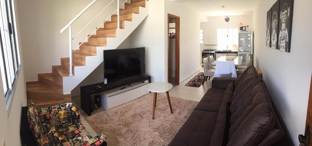 Sobrado geminado no Umuarama à venda - Balneario Praia do Perequê - Guarujá/SP com sala para 2 ambientes, 2 dormitórios, lavabo, cozinha, área de serviço,1 vaga